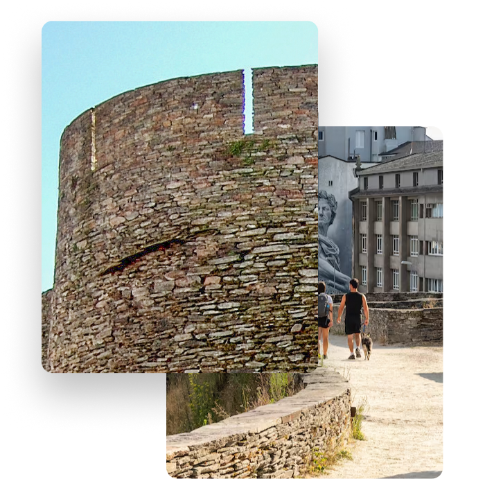 La muralla romana de Lugo es uno de los principales símbolos de la ciudad y Patrimonio de la Humanidad. Rodea el casco histórico y se puede recorrer completamente a pie, ofreciendo unas vistas únicas.